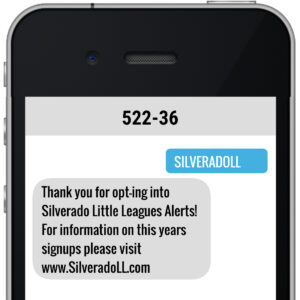 "Does your son or daughter play in the world’s largest organized youth sports program? If so please text SILVERADOLL to 52236 to keep up to date with our leagues alerts and announcements! If not and you're interested in signing up your child for this coming season, please text "Tryouts" to 52236 for dates and times for tryouts!